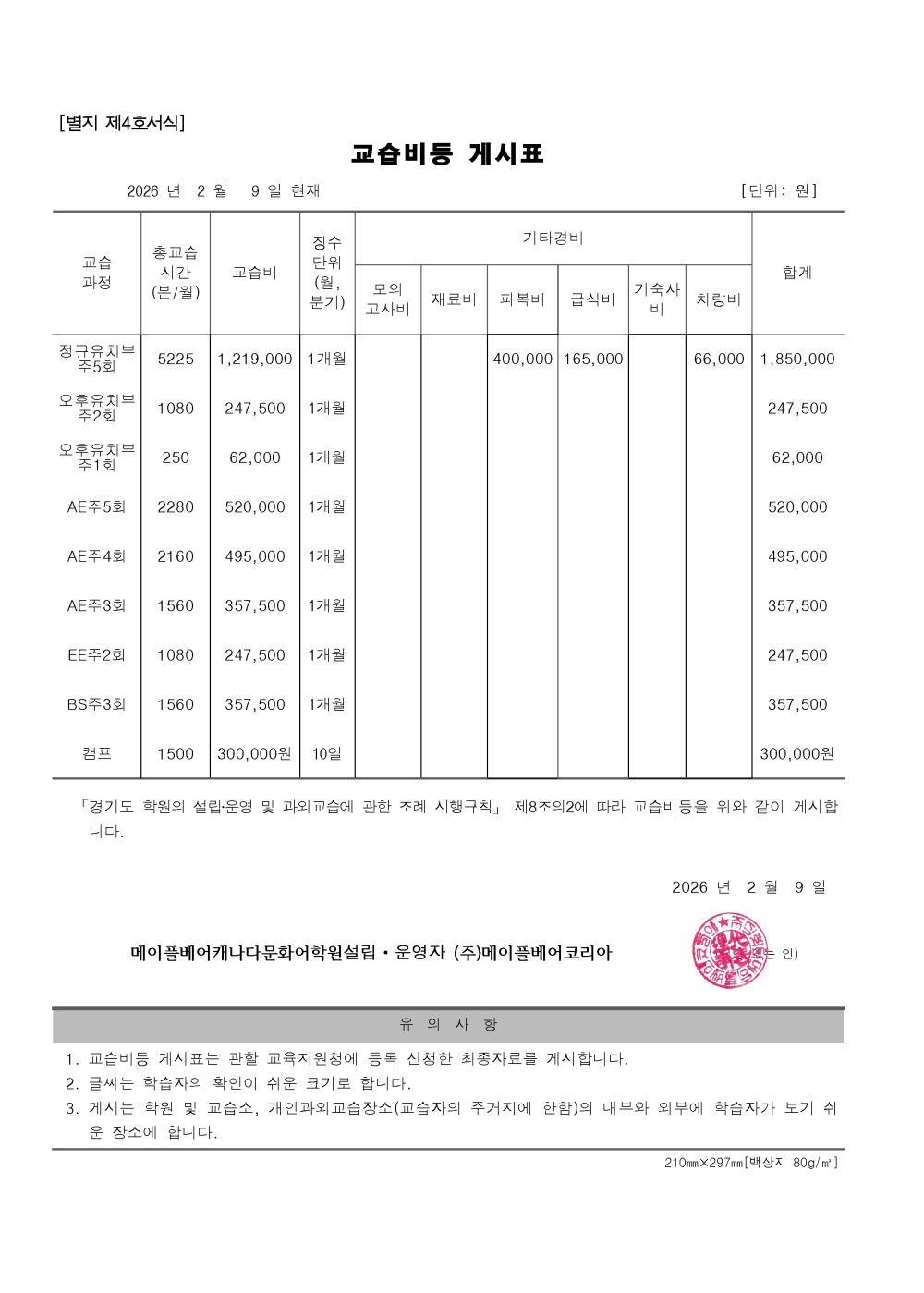 메이플프라자 빌딩 5층과 6층에 위치하고 있으며, 각 층마다 150평이상의 넓고 개방적인 공간을 자랑합니다. 자연 채광이 가득한 교실 속에서 학생들에게 따뜻한 분위기를 제공합니다. 캐나다 현지 교실의 모습을 그대로 만나볼 수 있습니다.